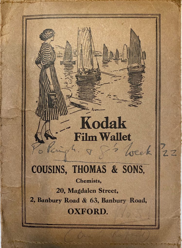 And this is Kodak. It says... This is from Oxford, where my dad was. On the back, it says, "Kodak film is the best film for Kodaks and Brownies." Brownies was a very old fashioned form of camera. So, this was like...